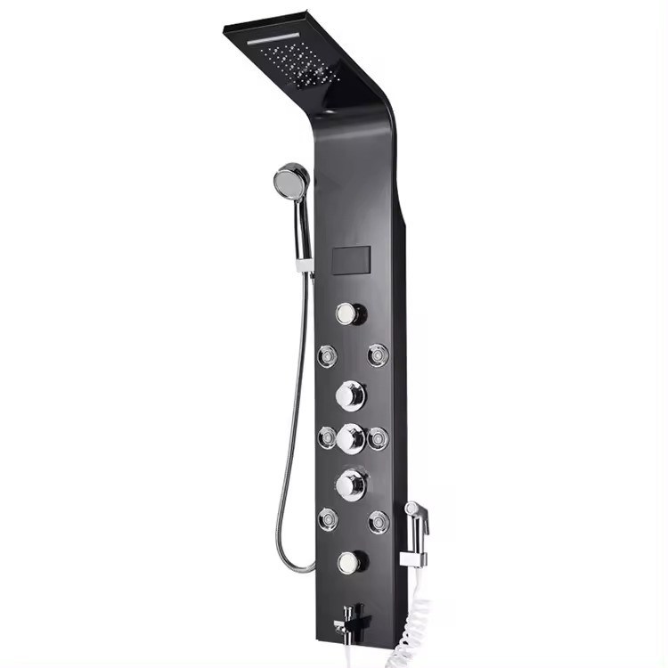 Σπίτι > προϊόντα > προϊόντα λουτρών > Πίνακα ντουζιού LED μπάνιου με θερμοστατική λειτουργία και ασβεστό χάλυβα καταρράκτη